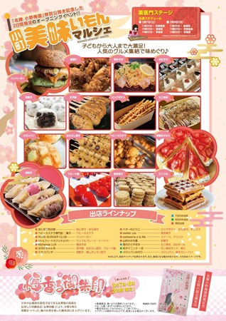 3月7日(土)から小野梅園の特別公開が始まるのに合わせて、今年も2日間にわたって「小町美味いもんマルシェ」が開かれる。