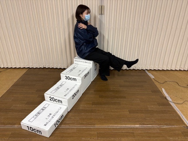 山城北保健所では、保護者である大人向けの企画として立ち上がりテストを行う。自分のロコモ度を知り、運動の習慣化や筋力アップについて考えるきっかけにしてみては。
