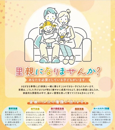 京都府家庭支援総合センターは、里親制度に係るチラシやグッズの配布、ポスターの掲示を通じて制度の周知を図る。