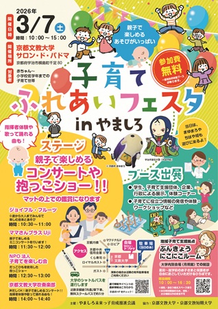 京都で生まれ育ったライター・紫原が地域の気になる情報をお届け。今回は、京都府宇治市の京都文教大学内のサロン・ド・パドマで3月7日(土)に開催される「子育てふれあいフェスタinやましろ」を紹介する。