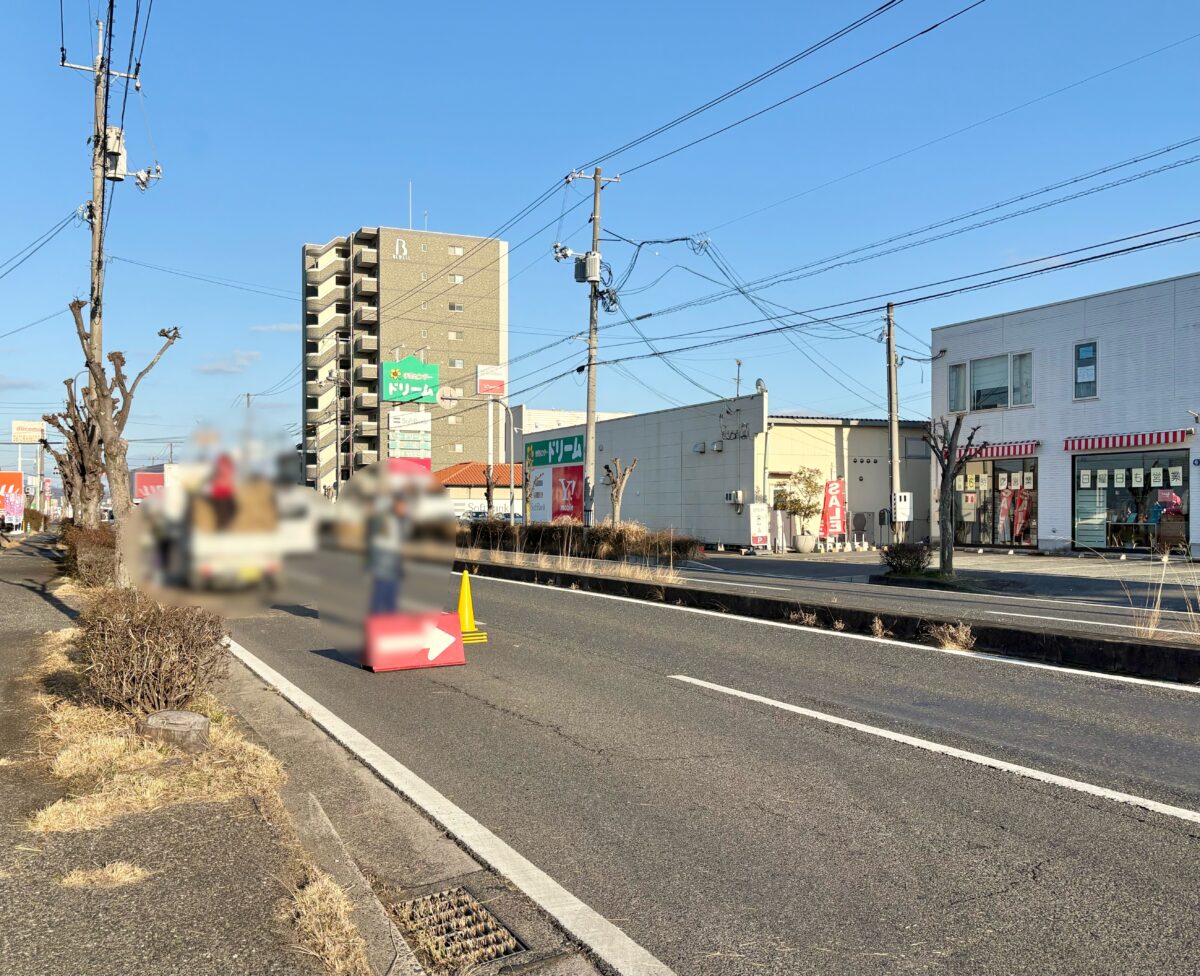 右を見ると「ヤマダデンキ テックランド総社店」、「ベビーフェイスプラネッツ総社店」、「西松屋 総社中央店」があるあたりです。