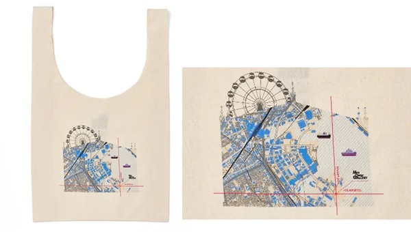 「マルシェバッグ」は、表面が横浜港を中心とする地図と横浜を象徴する観覧車のデザイン。