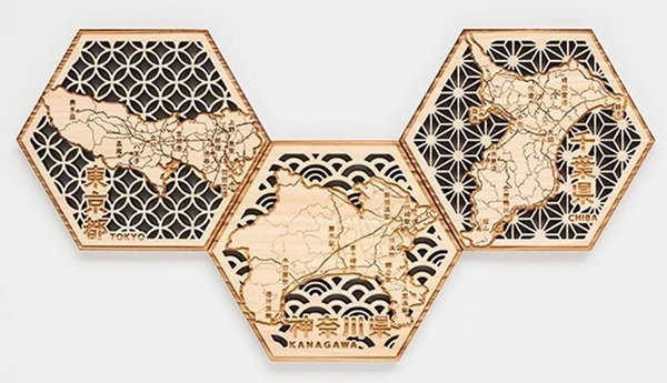 国産のヒノキを使用した「ヒノキシリーズ コースター」は、全3種のラインナップ。良い香りが漂うコースターは、木目の美しさと温もりを感じつつ、詳細に刻印された地図を楽しめるデザインになっている。価格は1,320円(税込)だ。