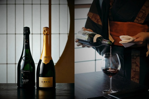 但馬玄の最大の特徴は、一般的な牛肉(約25℃前後)や、他の神戸牛(約14〜20℃)を遥かに凌ぐ、12.4度という驚異的な脂の融点の低さにある。このマグロの脂のように口の中でさらりと溶けていく繊細な脂質と、濃厚な肉の旨味。その絶妙な調和をさらに高めるため、同店のソムリエが但馬玄に寄り添う一杯を厳選する。