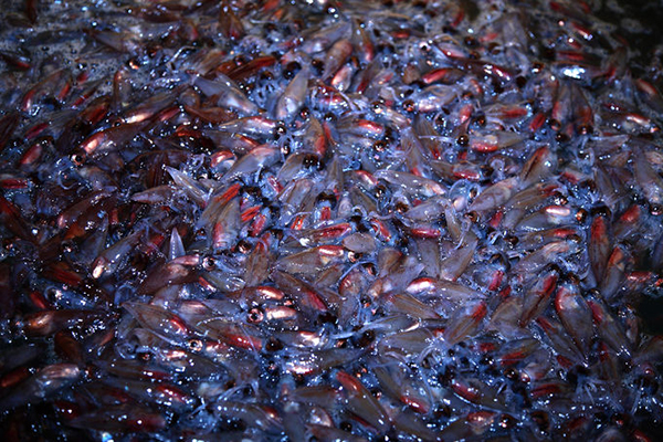 水揚げされたホタルイカ