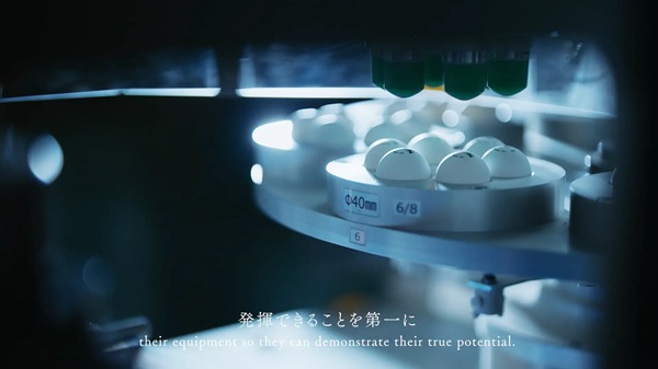 動画では、機械化が進んだ精密な製造ラインで、品質や製品への信頼性を訴求しながらも、人の手や人の目に焦点を当てることで、「選手が本来の力を発揮できることを最優先する」という100年つづく強い信念を表現している。