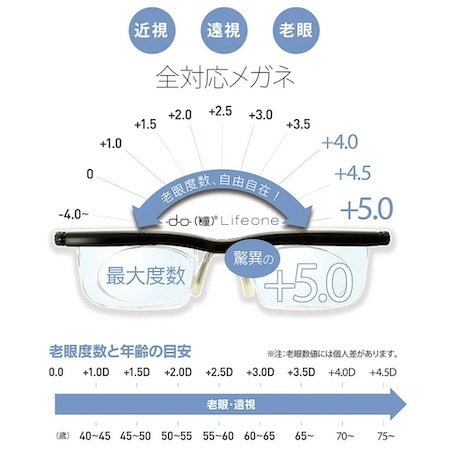 人生100年時代と言われ、視力も年齢や生活環境に応じて変化するため、固定された度数ではなく、自分の目に合わせて調節できる新発想メガネが「ドゥーライフワン」だ。