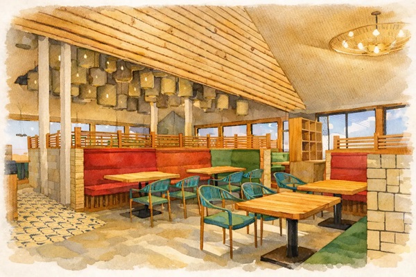 「PISOLA 水戸河和田店」の店内は、南国のリゾートを思わせるインテリアとゆったりとした空間設計が特徴だ。