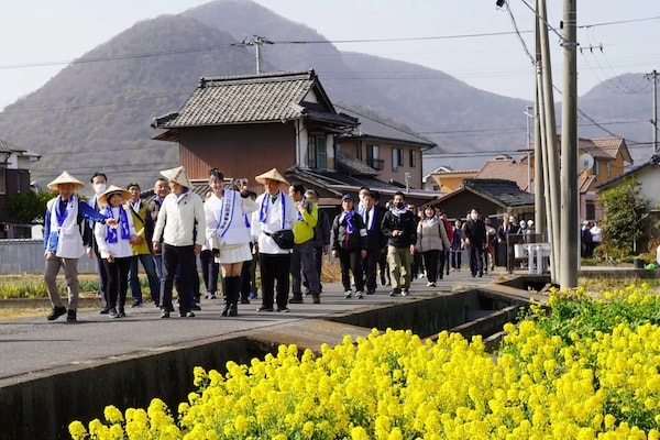 「遍路おもてなしネットワーク」主催の第11回「一日一斉おもてなし遍路道ウォーク」が2月23日(月・祝)に開催され、瀬戸内7県を拠点に活動するアイドルグループ「STU48」の信濃宙花氏が一日四国運輸局長として参加し、遍路道を歩いた。