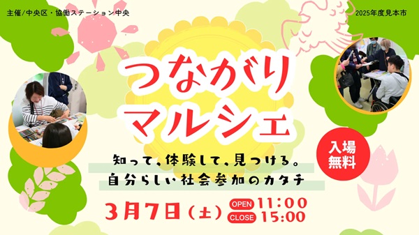 東京都中央区日本橋にある協働ステーション中央にて、3月7日(土)、自分らしい社会参加のカタチが見つかる「つながりマルシェ」が開催される。