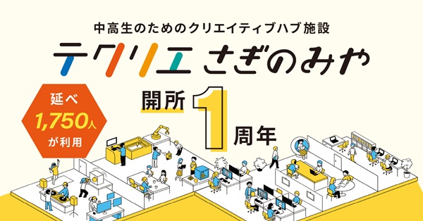 CLACKが運営する中高生向けのクリエイティブハブ拠点「テクリエさぎのみや」は、2026年2月に開所1周年を迎えた。