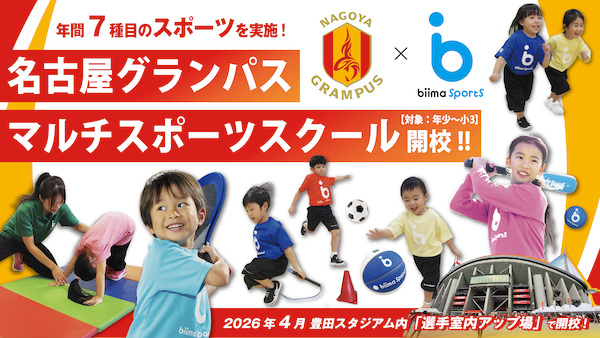 biimaは、J1リーグの名古屋グランパスとパートナーシップを締結し、4月に「名古屋グランパス マルチスポーツスクール」を開校する。