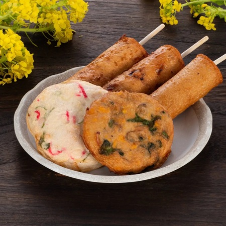 中でも「磯揚げ まる天」の看板商品である「たこ棒」や「チーズ棒」は片手で食べられる手軽さとその味わいから全国各地の観光地やサービスエリアでも好評だそう。他にも中華まんブランドの「ウァン」を展開しており、練り物のみではなく食品製造業として多岐にわたる商品を製造および販売している。