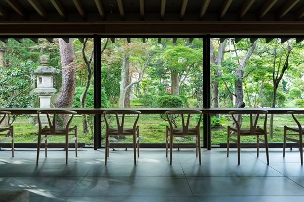 カフェには、酒蔵ならではの麹や酒粕など発酵食材を利用したブランチやスイーツをはじめ、こころもからだにもうれしいメニューが充実。枯山水の日本庭園を眺めながら、寛ぐことができる。