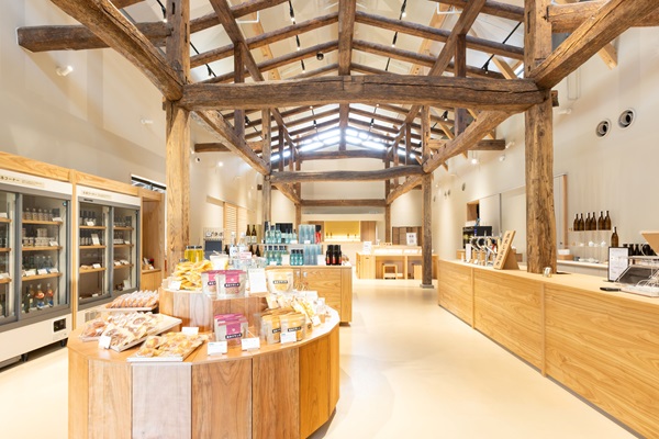 ショップには、日本酒や発酵食品、地元北越後の農産物、酒器や小物など幅広く揃えている。オーダー後にその場で瓶詰めするしぼりたての限定酒がお土産にも人気だそう。
