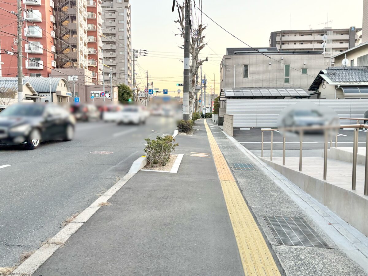 右を見ると「ローソン 岡山門田屋敷店」があって、その向こうは岡電東山線の門田屋敷電停があるあたりです。