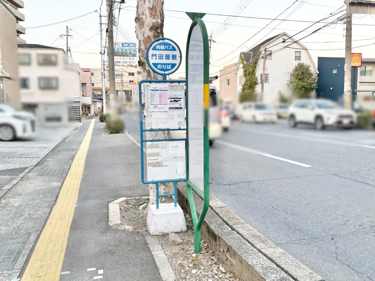 左を見ると両備バスの門田屋敷のりばがすぐ近く。