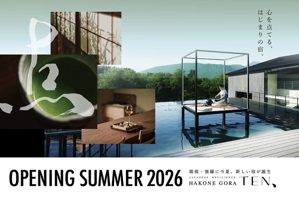 同じく担当取締役の小柳津林太郎氏は、「私たちは“休むためのホテル”ではなく、“回復するためのホテル”をつくりたいと考えました。便利で豊かな時代だからこそ、自分を取り戻す時間は意識しなければ持てません。箱根・強羅という土地が持つ本来の力。茶の湯が持つ静かな思想。自然との調和。これらを再編集し、“Japanese Resilience”という概念として提示するTENは、滞在そのものが目的になるホテルを目指します」とコメントしている。