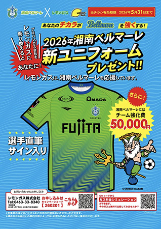レモンガスは、2月1日(日)~5月31日(日)の期間中、同社がオフィシャルクラブパートナーとして応援する、プロサッカークラブ「湘南ベルマーレ」とのコラボキャンペーンを実施している。