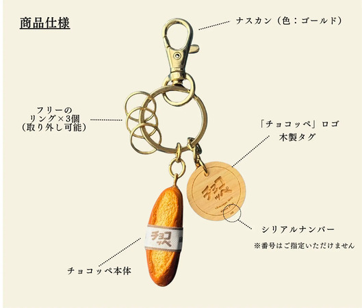 「チョコッペキーホルダー」の価格は2,500円(税込)で、本体サイズは長さ約4cm・厚み約1cm。兵庫県産ヒノキで作られた、直径2.5cmの木製タグが付いており、重さは全体で約23.5gとなっている。