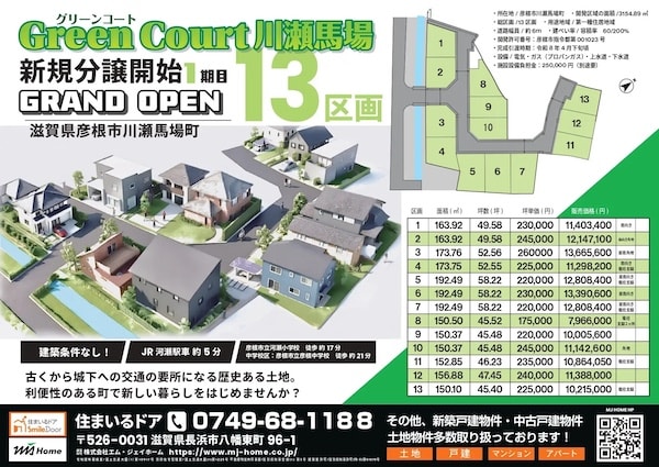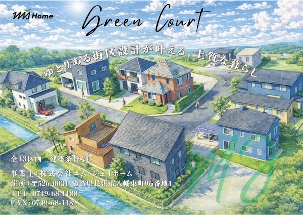 「エム・ジェイホーム」は、滋賀県彦根市川瀬馬場町にて総区画数13区画の分譲宅地「Green Court(グリーンコート) 川瀬馬場」の販売を開始した。
