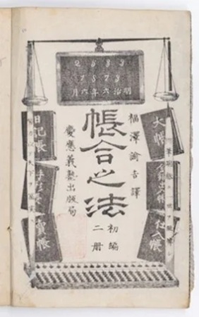 福澤諭吉は1873年、ブライアント、ストラットン共著の商業簿記の教科書(Common School Book-Keeping. New York, 1871)の翻訳本として『帳合之法』を出版。同書は日本初の簿記学(西洋式複式簿記)のテキストで、これを用いた「新しい記帳法」の有料講習会が、同年7月に丸屋商社の店内で開かれた。