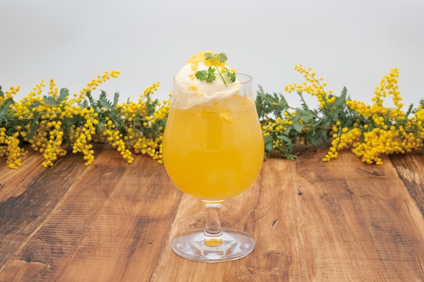 「ミモザカクテル」は、スパークリングワインとオレンジジュースをあわせた春らしいカクテル。横浜髙島屋店では935円、テラスモール湘南店では880円で販売される。