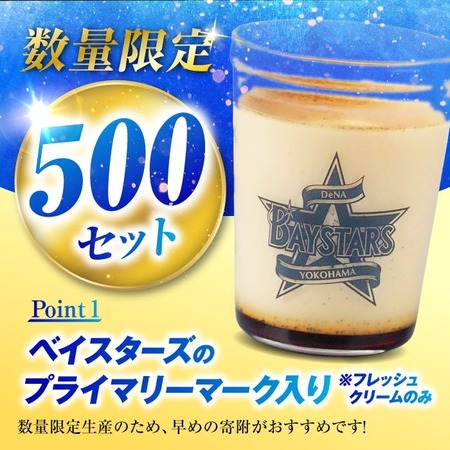 新たに返礼品として出品された「マーロウ 横浜DeNAベイスターズ 球団オリジナルビーカー入りプリン」は、横須賀を代表する手作り焼きプリン専門店「MARLOWE(マーロウ)」の返礼品。容器に横浜DeNAベイスターズのオリジナルデザインを施した、ふるさと納税限定・特別仕様のプリンだ。合計4種類の返礼品があり、3個セットと4個セットは予定数に達したため受付を現在停止している。
