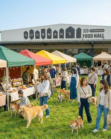 「わたしのワンコマルシェ」は、「WHATAWON」の屋外エリアに、犬を愛するショップや作り手が集まり、犬好き同士が自然と集まるマルシェ。