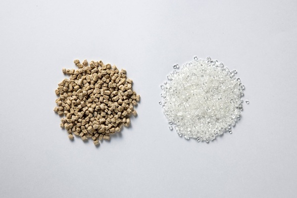 また再生ポリカーボネート「DReC PC(ダイレックPC)」は透明感が美しい素材で、自社で発生する廃材をリサイクルしている。