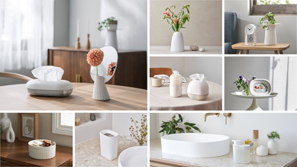 「Wet tissue case」は、ツートーンデザインのロールウェットティッシュケース。透明部分のストライプはデザインのアクセントでありつつ、さりげなく残量を一目で確認できる。角のないシンプルなデザインと機能性が融合し、日常に上質さを与えてくれる。