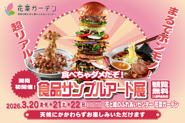 神奈川県立 花と緑のふれあいセンター 花菜ガーデンで、3月20日(金・祝)・21日(土)・22日(日)の3日間、「食べちゃダメだぞ!食品サンプルアート展」が開催される。
