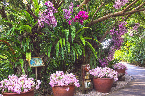 「うりずん」は、沖縄で一年の中でもっとも過ごしやすい季節。「ビオスの丘」では、この季節に合わせて園内の入口から船着き場へ続く散策路を色とりどりのらんの花で彩る「うりずんの花道」が登場する。