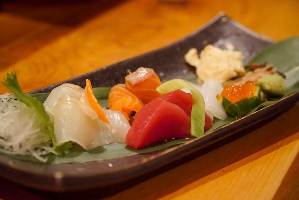 お造りの皿に並ぶのは、マグロ、サーモン、鯛、イカ、イクラ。器の余白までもが計算されたように、美しく、でも気負っていない。
