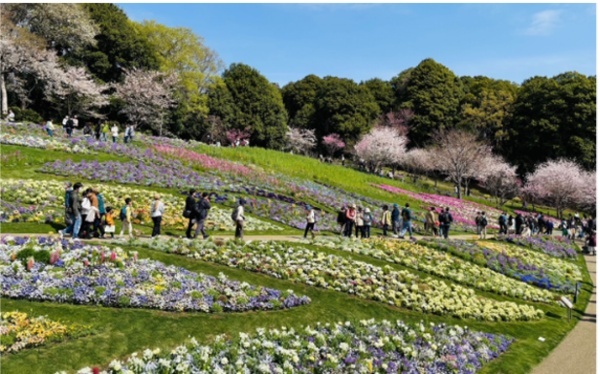 「GREEN×EXPO 2027 1年前の幕開け〜朝焼け色に染まる春の里山で〜」をテーマに、「GREEN×EXPO 2027」まで1年となる節目に合わせ、約150品種20万本の多種多様な花々と、約150本のサクラが楽しめる約10,000㎡の大花壇を公開。“朝焼けの空”をイメージした花壇デザインで、未来への期待感を表現する。なお、会場内で使用される花苗の9割以上が、横浜市内産(協力:横浜農業協同組合)となる。