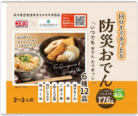 スギヨは、石川県立看護大学の学生とともに、地域の声を活かした防災食「Hotでホッとな 防災おでん 〜いつでも おでん たべまっし〜」を商品化し、1月に発売を開始した。
