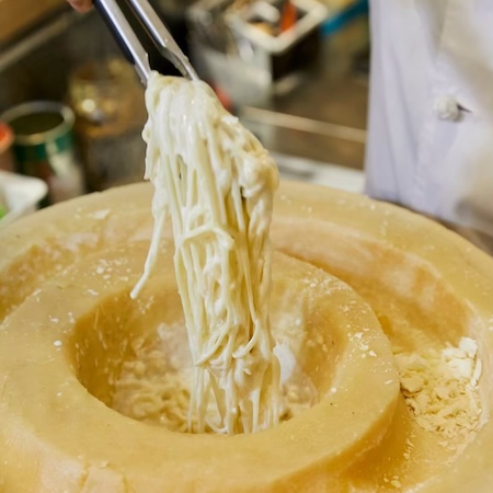 さらに「ホールチーズのクリームパスタ」も提供。ホールチーズに熱々のパスタを絡めるパフォーマンスが見どころで、価格はLサイズ1,408円(税込)、Mサイズ968円(税込)だ。