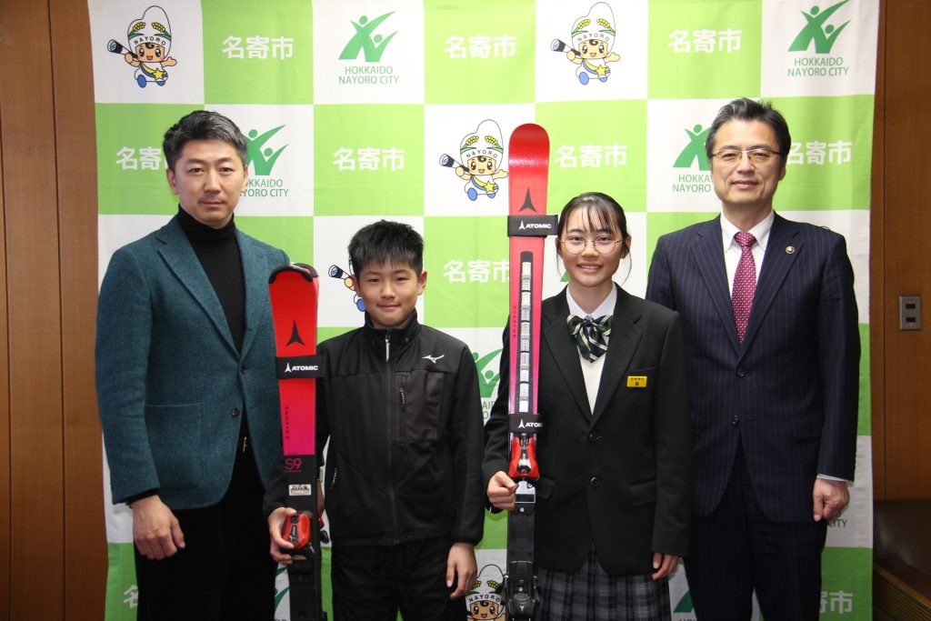 寺島さんと泉さんの2人は、同団代表指導者の寺島峻介さんと共に名寄庁舎を訪れ、24日から上士幌町(十勝総合振興局管内)で開催される「JOCジュニアオリンピックカップ2026全日本ジュニアスキー選手権大会」出場することを報告。