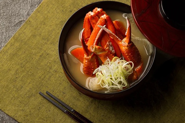 食事の最後は、旨みが溶け込んだ「紅ズワイガニ汁」で締めるのもおすすめだ。