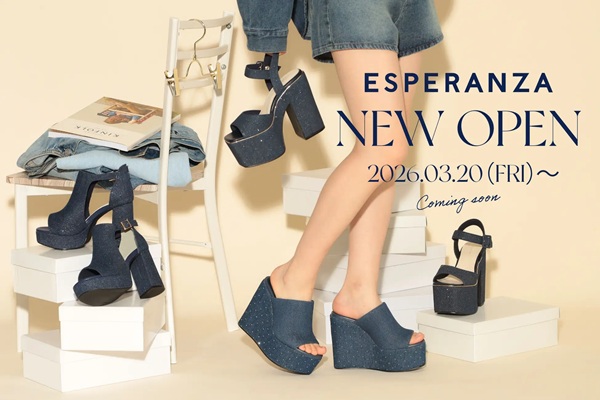 ワールドグループの神戸レザークロスが展開するシューズブランド「ESPERANZA(エスペランサ)」は、愛知県名古屋市の「イオンモール大高」に、新店舗「ESPERANZA イオンモール大高店」を3月20日(金)にオープンする。