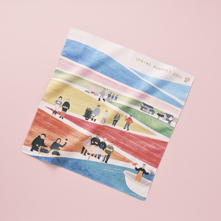4色の風景をシンプルなグラフィックに再構成し、刺繍という手仕事の質感で表現することで、これまでとは異なる「触れられる春」を届けていく。
