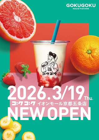 ライフコミュニケーションは、スムージー・フレッシュジュース専門店「GOKUGOKU(ゴクゴク)」の京都2号店となる「GOKUGOKU イオンモール京都五条店」を、3月19日(木)にグランドオープンした。