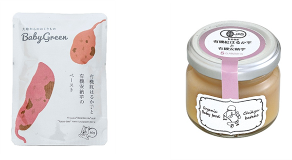 新たに発売された「有機紅はるか芋と有機安納芋ペースト」は、有機野菜の紅はるか芋と安納芋を使用し滑らかなペースト状にした商品で、さつまいものやさしい甘みが、赤ちゃんのはじめての離乳食に最適だ。レパートリーも広がり、子どもの成長に合わせて利用できる。