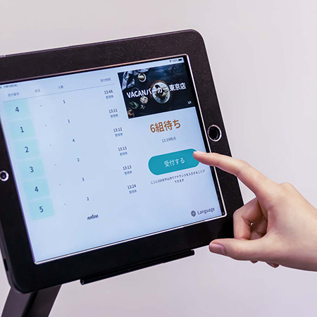 「Q ticket」は設置場所のタブレットの操作や、専用ページへのアクセスにてデジタル整理券を発券し、その場に並ばずに順番待ちができるようにするサービスである。