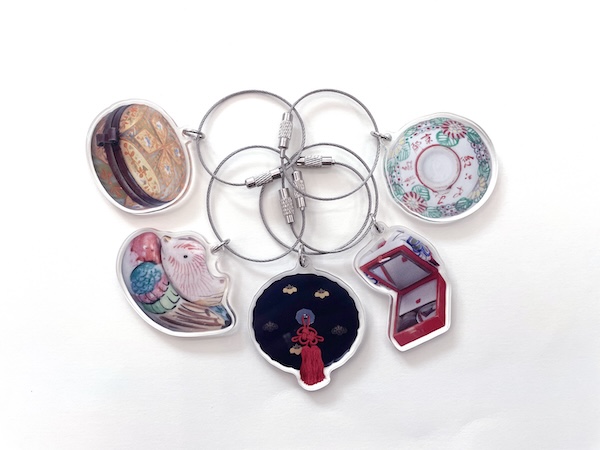 「化粧文化ギャラリー」と東京都中央区銀座の「ポーラ ミュージアム アネックス」で、会場限定のカプセルトイ「アクリルキーホルダー」300円(税込)を販売。絵柄は各会場5パターン、2会場で全10パターン登場する。