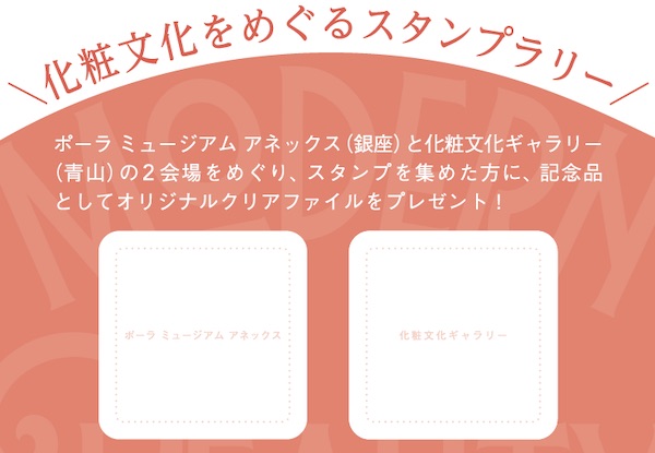 また、4月28日(火)~5月31日(日)の期間には「化粧文化をめぐるスタンプラリー」を開催。「化粧文化ギャラリー」と「ポーラ ミュージアム アネックス」の2会場を巡り、スタンプを集めた人に、記念品としてオリジナルクリアファイルをプレゼントする。記念品は数量限定のため、予定数に達し次第終了だ。なお、記念品のプレゼントは期間中、1人1回限定。開館日・開館時間は会場で異なるため、事前に公式HP・SNSで確認しよう。