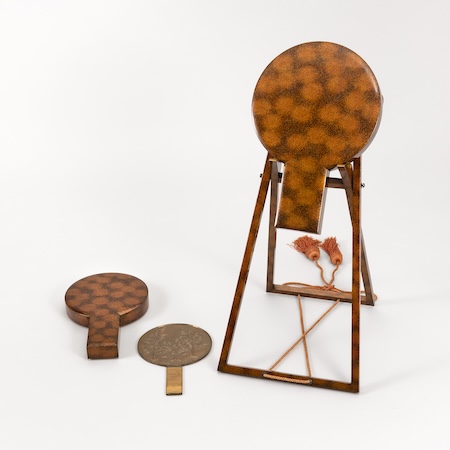 「よそおう わたし」展は、会期を前期・後期に分けて、それぞれ「鏡」と「香り」にフォーカス。前期「鏡を見つめて」展では、エトルリアの青銅製手鏡(紀元前4世紀頃)や、アール・ヌーヴォー風の優美な女性像立鏡(1900年頃)、梨地蒔絵が繊細に輝く鏡箱と鏡掛(江戸時代後期)などを展示し、異なる時代、地域の鏡を通して、自分らしい姿やよそおいを思い描いてきた歴史を辿る。