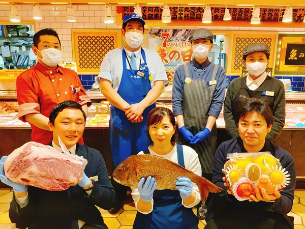 「魚の北辰」「九州屋」「ニュー・クイック」「ミート ミート ミー」「東京鶏肉本舗」「ミート デリカテッセン カイゼル」の6ショップからなる生鮮食品売場。