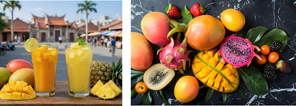 台湾有数のフルーツ産地として知られる台南。その台南産のパイナップルとマンゴーを使用した特別メニューとして南国ドリンクが登場する。濃厚な甘みと爽やかな酸味が特徴の「台湾マンゴーサワー」「台湾パインサワー」は、すっきりとした飲み口で台湾グルメとの相性も抜群である。アルコールが飲めない人向けに「マンゴージュース」「パインジュース」も用意される。