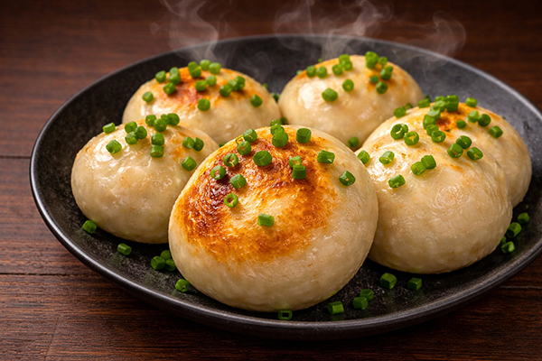 「焼き小籠包」は、もっちりとした皮の中に、あふれる肉汁を閉じ込めた一品。ひと口ごとに旨みを感じられ、出来立てならではの熱々の美味しさを楽しめる。